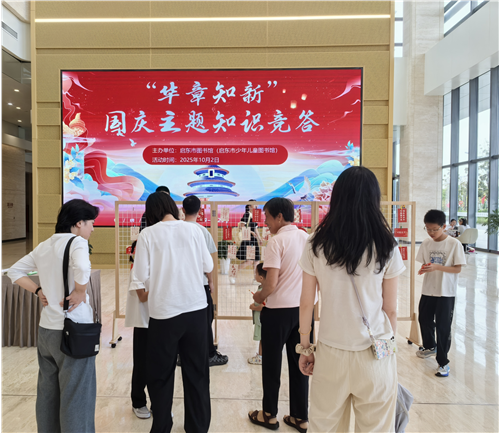 金秋十月,我们迎来了新中国76周年华诞。为抒发爱国爱家的情怀,展示蓬勃向上的精神风貌,共同期盼更加美好圆满的未来,启东市图书馆于10月2日下午,开展“华章知新”国庆主题知识竞答活动。通过知识竞答的模式一起歌颂祖国的繁荣与人民生活的美好。